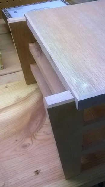 Parecía bueno, pero no así que le pregunté a mi esposa y ella le dijo que parecía 'de estilo oriental' y que biselar los bordes podría ser un buen toque. Gran idea, así biselados los bordes de la parte superior y de las piernas (ver fotos arriba) y la prueba de colocarlo otra vez.