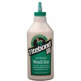 Cortar las tablas a la longitud que desee y empezar a pegar. Usé pegamento para madera Titebond ultimate. Cubrir el lado de la tabla con el pegamento, asegurándose de que todos los bordes del pegamento. Sujetar los tableros juntos, tratando de mantener las tablas incluso. Limpie el exceso de pegamento que rezuma de las tablas con una toallita húmeda. No te preocupes demasiado si son un poco irregulares o tienen restos de pegamento seco sobre ellos más adelante - nosotros nos encargamos de todo lo que más tarde. Dejar el pegamento seque durante la noche.