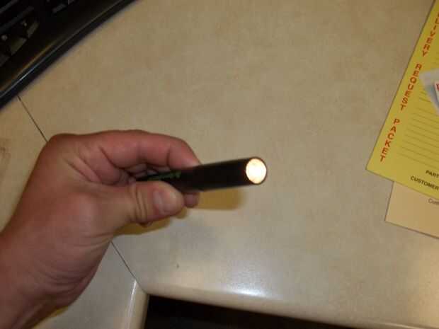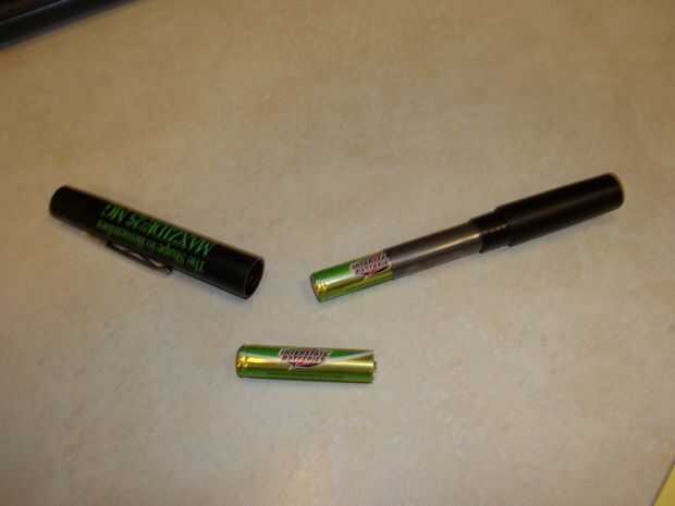 Seleccionar una pluma de luz que tiene pilas AAA en el mismo, estas baterías son casi exactamente el mismo diámetro que su e-cig. También asegúrese de que el interruptor de la luz de la pluma está en el lado bajo el clip de bolsillo. Esto es mejor que las luces que tienen el interruptor en el extremo porque el agujero debajo del clip entonces actuará como un orificio de aire cuando el e-cig está allí. Ahora saca la pluma ligera de los insertos de metal, esta es la luz del led en un lado y el terminal por el otro la batería.