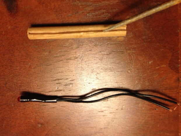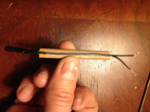 -Una vez que los cables entra en el espacio, con cinta adhesiva en el "cigarrillo" para mantenerlos en su lugar.