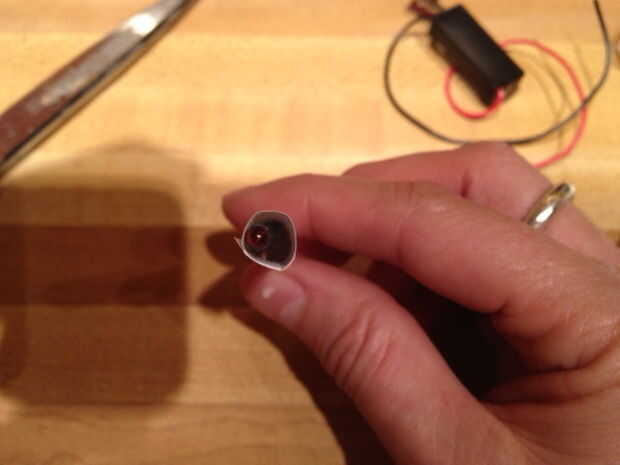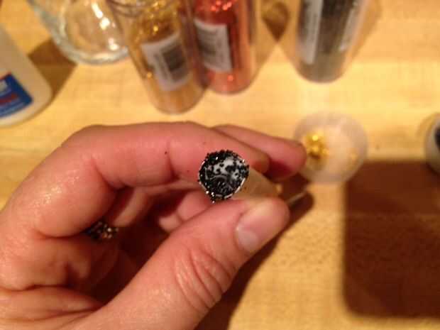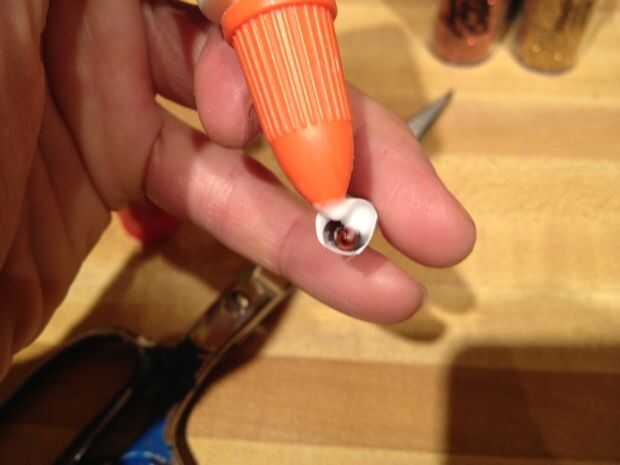 -Llenar el espacio en la punta con cola "blanca" - Esto se seca claro, así que no te preocupes que cubre la bombilla.