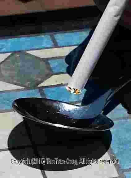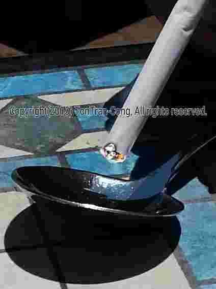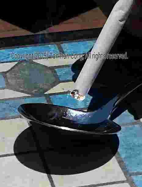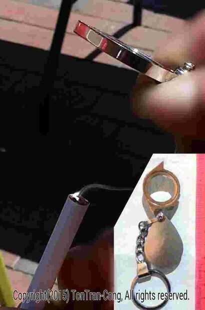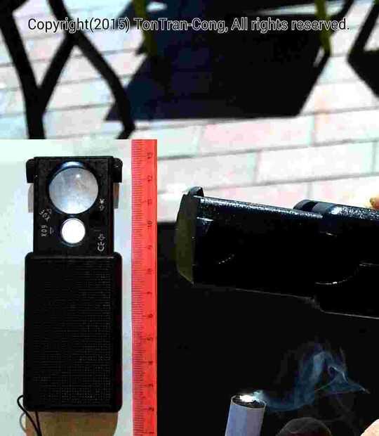 Figuras: Invertir secuencias de encender un cigarrillo por una cabeza esférica cuchara bien pulida con d = 50mm, f/d=1/0.4 en 12s 9s 7s, 4s, 0s. Iluminación por una lente de vidrio d = 21mm, f/d=1/2.5 en 16s. Iluminación de un pequeño lente de plástico d = 21mm, f/d = 1/2 en 22s.