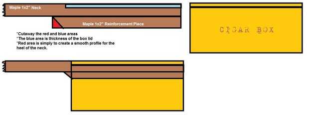 La próxima cosa que quieres hacer es reforzar el cuello. Esto es porque en un poco te vas a notch una parte de la madera del cuello ya sea permitir que la parte superior de la caja para que vibre o para tener en cuenta para la tapa de la caja (dependiendo del tipo de caja que tienes). 3 cuerdas de guitarra se extendía sobre el cuello y afinadas crean algo así como un 14 trillones de libras de fuerza (puede ser una exageración). La Junta Directiva de arce por sí mismo puede manejar. Pero una vez que empiezas a cortar para hacer espacio para la tapa de la caja que del cuello puede llegar débil bastante rápido.