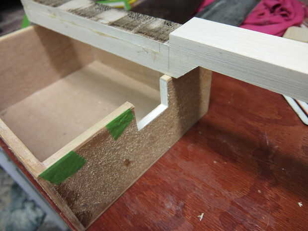 Ahora corte una muesca de la caja donde el cuello se asoman a través de. Para ello, trace el extremo de la culata de la Junta de cuello en la parte exterior de la caja utilizando sus marcas anteriores como una guía. Puede utilizarse una sierra de marquetería para la caja de corte. Utilice una lima o escofina para formar el agujero para que la Junta del cuello se ajusta perfectamente.