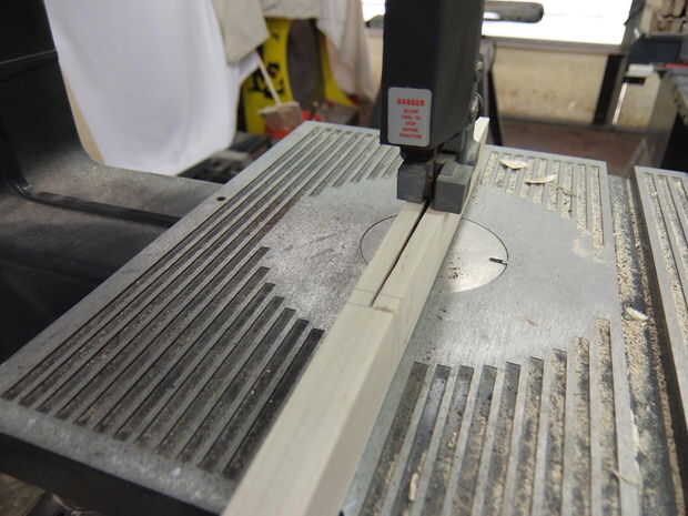 Miden aproximadamente 6 pulgadas de la marca de la tuerca de la Junta del cuello y hacer un corte. Luego cortar la pieza resultante en dos tiras de 6" y dejar de lado. Estos intercala juntos y utilizados de la forma del cabezal.