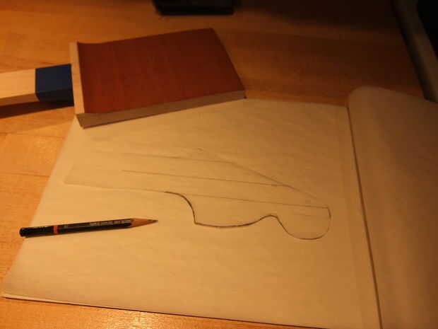Mientras que está secando puede diseñar la forma de su cabeza. Puede hacerlo a mano alzada o hacer un Google búsqueda de imágenes de diseños de cabezal. Usted puede conseguir realmente creativo. la única cosa a recordar es que el cabezal tenga 3 guitar tuner máquina puestos asoman por los agujeros. Para la fuerza, generalmente desea que los tres orificios perforados a través de la Junta de cuello "original" y no las orejas. Esto no es Evangelio; puede que funcione de lo contrario. Pero no vengas llorando a mí si usted tiene problemas por el camino.