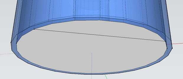 Cuando se mira en la parte inferior, me di cuenta que no tenía un objeto en 3D porque la base fue de 2 dimensiones. Empujé el borde. Puesto que el círculo vacío es un plano en el centro de lo que había expulsado, dibujó una línea en toda la región adjuntada plana y el espacio plano vacío fue llenado con su forma.