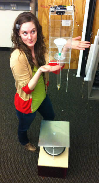 Este proyecto podría funcionar perfectamente bien sin un depósito de arena colgando. Usted podría simplemente arena de espolvorear encima de un plato oscilante para generar patrones. Pero ¿qué es la diversión en eso? Aquí es donde el proyecto se convierte en una instalación...