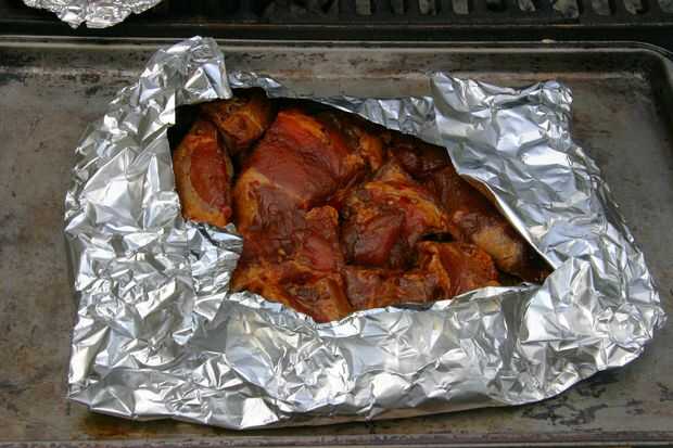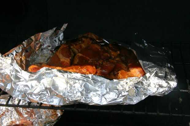 Coloque las costillas en una capa en una hoja de papel de aluminio. Hacer grande lo suficiente para que se puede doblar hacia los lados para que los jugos no caer en las brasas y causar flare ups.