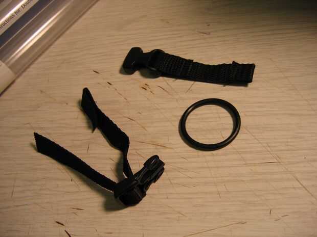 Esto es realmente simple. Necesita un conjunto de clips (puede salvar estos fuera una mochila muerta, conseguir en la tienda de tela, encontrar ahí su loft de la cometa, cualquiera que sea.) También necesitará aproximadamente diez pulgadas de correa de nylon entre ellos, un anillo O sólo lo suficientemente grande como para caber alrededor del cuello de la botella de tu bebida favorita (o usted puede hacer su propio corte un anillo O grande y el cierre es con pegamento).