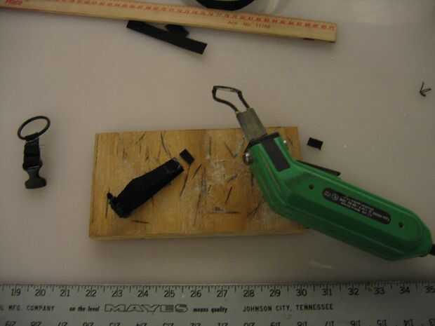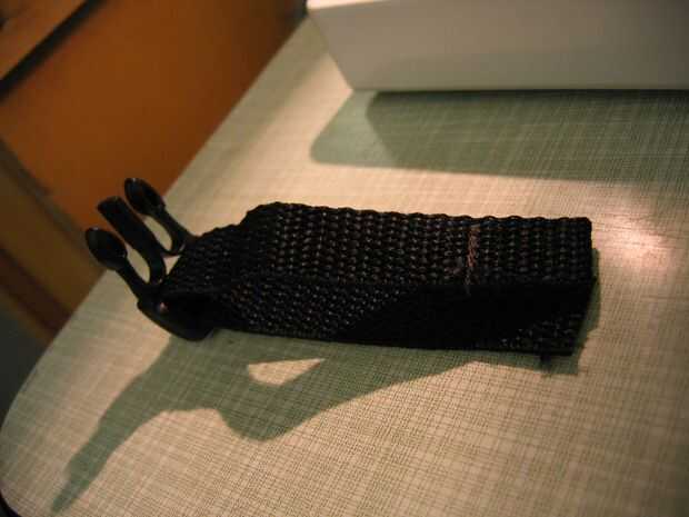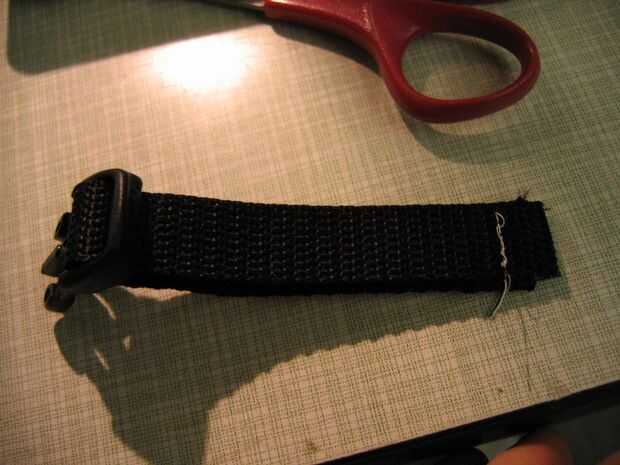 Ejecutar otro trozo de nylon a través del otro clip y coser para hacer un bucle que se secuencia en su cinta. Si quiere lujo, puede calentar los extremos cortados de nylon para evitar que se deshilache.