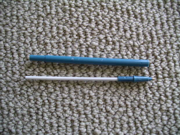 Su cuchillo de bolsillo y sacar las pinzas, ahora su pluma y tire de la parte superior utilizando las pinzas. debe haber algún plástico que estaba bajo neath el cuerpo de la pluma.