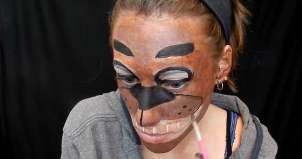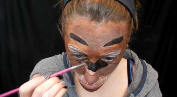 tomar un marrón oscuro todo, esbocé entonces tomé negro y lleno de mi nariz y las cejas... entonces esbocé los ojos. También he añadido tres puntos pequeños en ambos lados de la boca.
