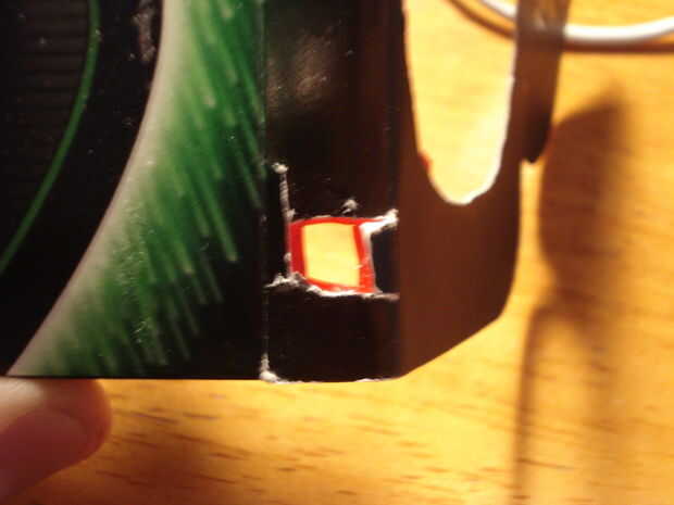 Deslizamiento en el Ipod y alinee los orificios auriculares y corte un agujero en la parte superior de la caja de cartón para los auriculares.