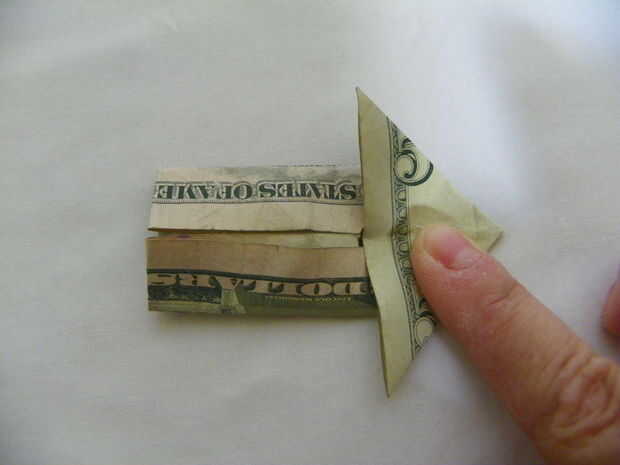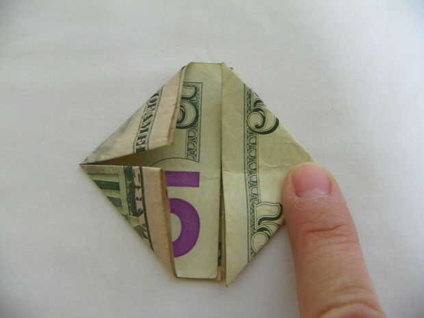 Ahora doblar el borde superior hasta el centro, asegúrese de que no doblar los puntos del lado derecho.