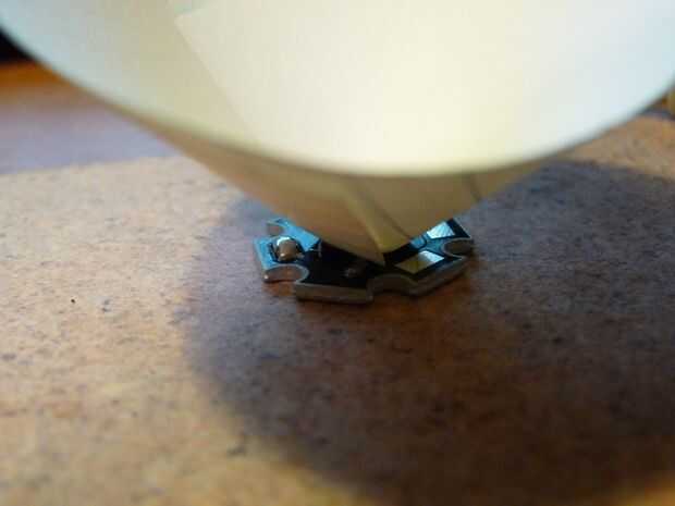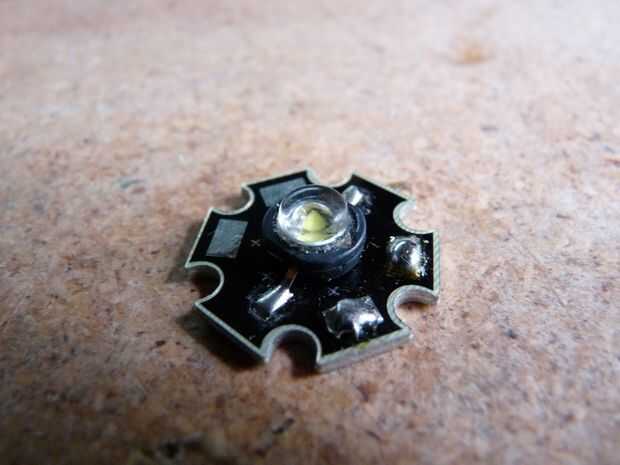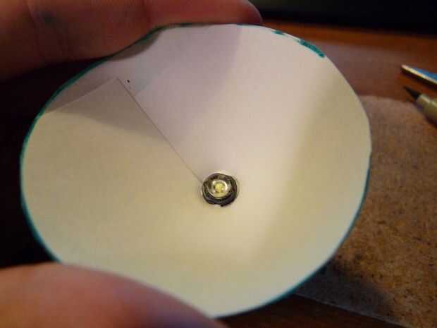 Después de hacer esto, el LED a través del agujero en el cono para que el LED se encuentra en el lado con la proyección de aluminio, pero el disipador que viene conectado al LED es en el exterior del cono.