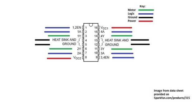 El eje superior izquierdo es el pin uno. La parte superior del puente de H puede determinarse buscando el guión en el chip.