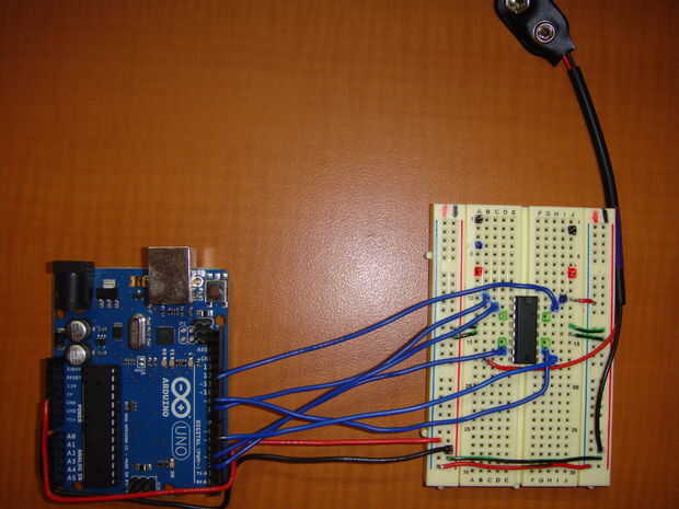 Los cables de positivo y tierra vistos unido a la derecha de la placa pertenece al conector snap 9V.