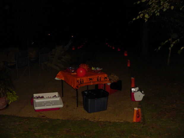 Ver deportes en él de vez en cuando pero lo que se ha convertido en una verdadera tradición en nuestro barrio es nuestro Festival de cine de Halloween. Generalmente lo hacemos una o dos semanas antes de Halloween y nos muestran cortos de Halloween clásico como Donald Duck "Trick or Treat", "Es la gran calabaza, Charlie Brown", Disney de dibujos animados "La leyenda de Sleepy Hollow", etc. y luego mostrar un Halloween o una película espeluznante con temas como "Scooby-Doo 2: Monsters Unleashed" o "Wallace & Gromit: Curse del fueron-conejo". Nada demasiado asustadiza para los niños pero espeluznante de la misma. Aquí hay fotos de nuestra configuración de Halloween. Configurar un par de filas de balas de heno para los niños a sentarse.