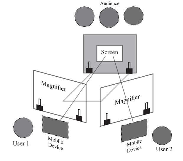Trata de ordenar (o hacerte) la instalación de proyección he puesto juntos. Consta de 6 clips de la carpeta grande, 2 hojas de aumento y una pantalla de cartón y plástico de 11 x 17. Cortar un cuadrado de la mitad de 11 x 17 (8.5 x 11) y reemplazarlo con un pedazo de plástico un poco más grande, ligeramente transparente. Cinta de doble cara funciona muy bien. Uso dos de los clips para sostener la pantalla horizontalmente. con los otros 4 clips puede utilizar 2 cada uno en las hojas de aumento y organizar en el orden aproximado según sea necesario para asegurarse de que obtener su proyección en el foco.