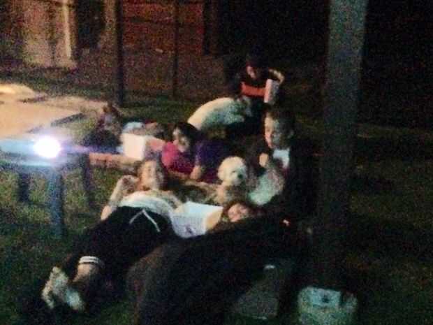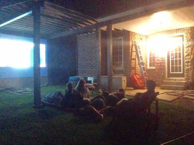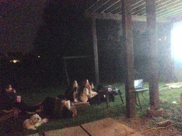 Esta es una muy divertida manera de ver tus películas en la noche. Es una sala de cine en su propio patio trasero!