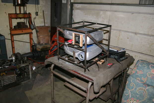 Tener en cuenta que debes ser capaz de moverse por lo menos un proyector en cualquiera de los ejes y que necesita resistir un filtro polarizador delante de la lente. Una palabra de precaución, mantener el polarizador como mucho delante de la lente como sea posible para maximizar el área superficial que se utiliza, se calienta y derrite si lo pones demasiado, confía en mí.