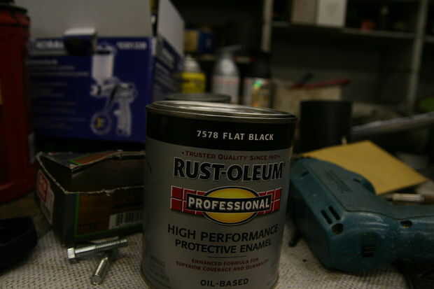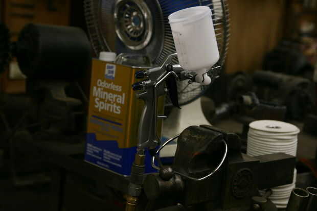 Para hacer esta pintura pulverizable que necesitaba para mezclar con 1/3 de aguarrás, no quiero probar "puede confundir" pintura en aerosol variedad, el patrón de rociado no es suficientemente consistente, compré un pulverizador neumático para este proyecto.