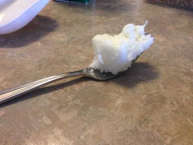 Medida colmada 1 cucharas de aceite de coco y poner en la tolva.