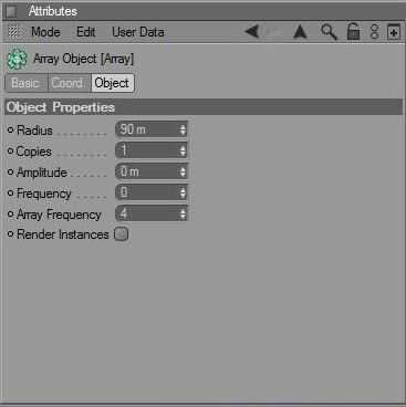 6. Resalte la ficha de objeto, el radio de la matriz a 90 y copias a 1 (cuadro 4).