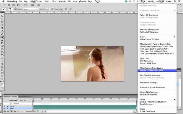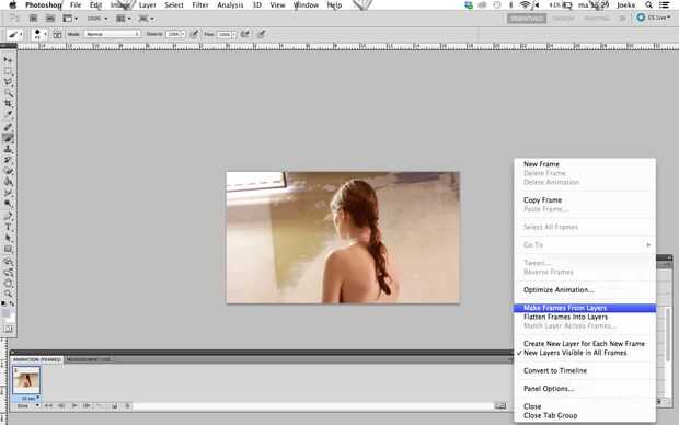 Haga clic en 'Hacer marcos de capas' para agregar las capas para la animación de marco.