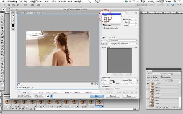 Haga clic en archivo > Guardar para Web y dispositivos.