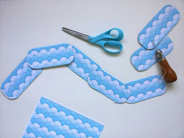 La ola se hace igual que el delfín, con líneas de pesca todas las juntas y extremos, proporcionando lugares para conectar a los ganchos del mecanismo de conexión.