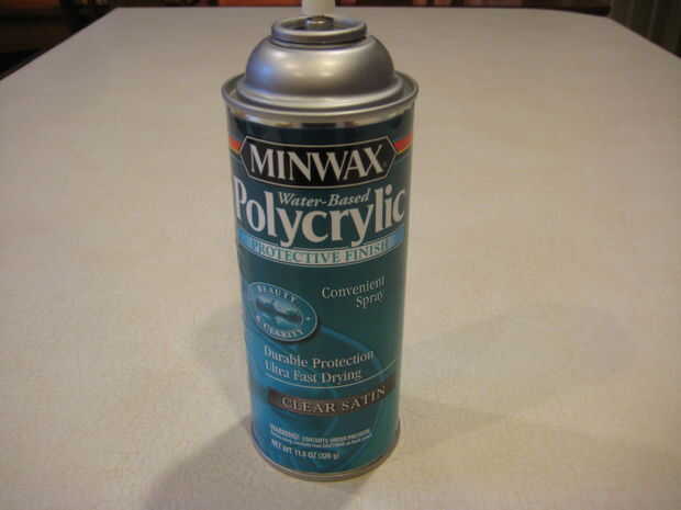 Todos los pedazos de madera fueron acabados con agua MinWax Polycrylic basado en un claro satinado acabado. Este material se seca muy rápido si no has usado antes. La mayoría de las piezas de la pista eran aerosol acabado. El spray hace mucho más fácil aplicar un acabado a la extraña forma de piezas.