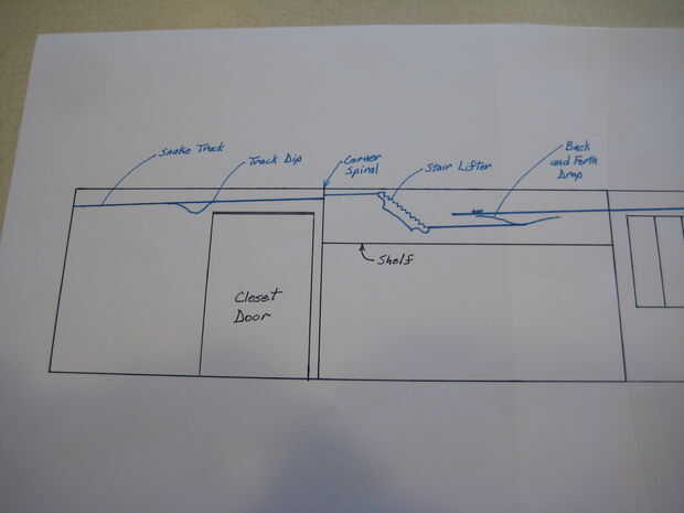 La mejor manera de hacerlo es dibujar todas las paredes de la habitación (al lado) donde va en la construcción de la pista de mármol. Esto le dará una imagen larga de la habitación donde usted puede planear su diseño. Dibujar cada puerta, ventana, estante, imagen o cualquier cosa que usted necesita para mantenerse lejos de. Te sorprenderás cuánto o cuán poco espacio tienes para la pista. Este ejercicio le ahorrará una enorme cantidad de tiempo durante la construcción de la pista.