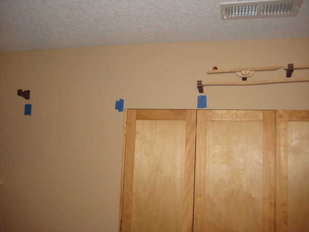 Una cosa que ayuda en la colocación de los soportes de la pista es para marcar todos los montantes en la pared (si usted planea conectar a ellos) con cinta de pintor azul. Esto le ayudará a averiguar donde quieres la pista y elemento compatible.