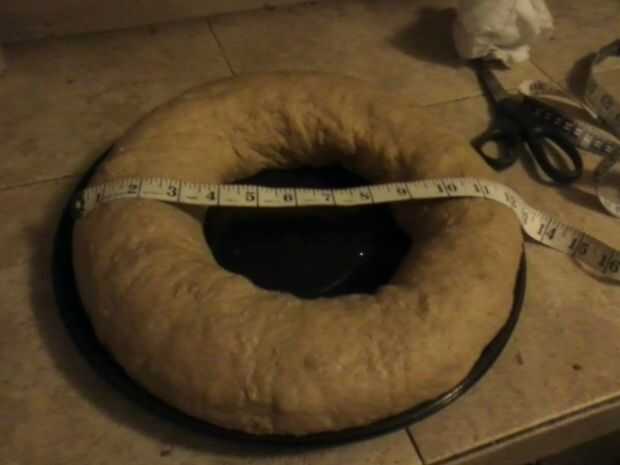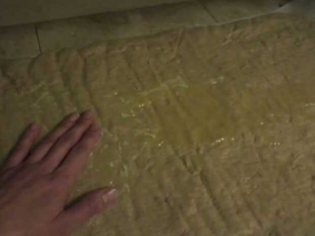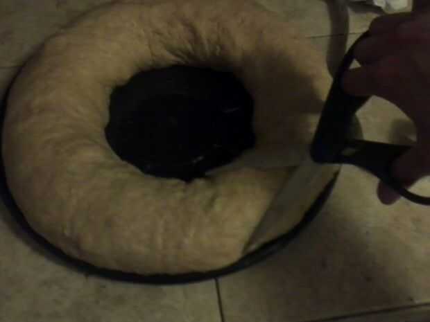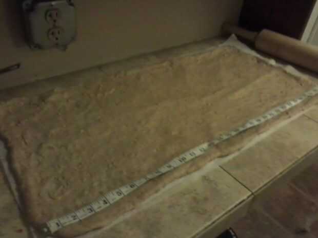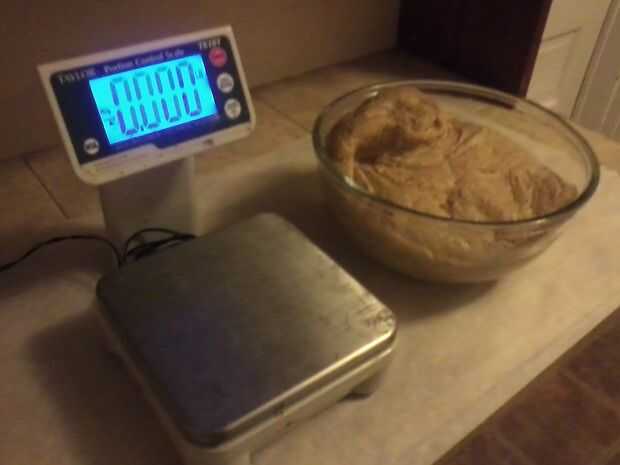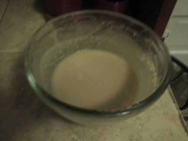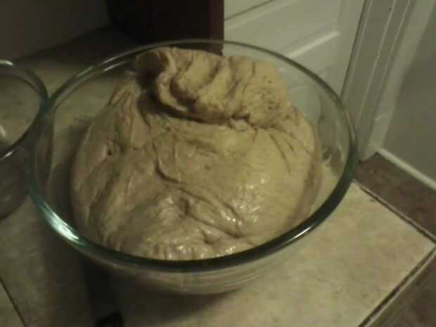 Combinar todos los ingredientes y mezclar durante 7 minutos. Que la prueba en un recipiente durante 2 horas. Perfore abajo en el recipiente cuando se prueba.