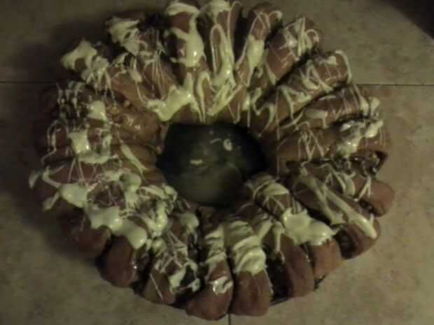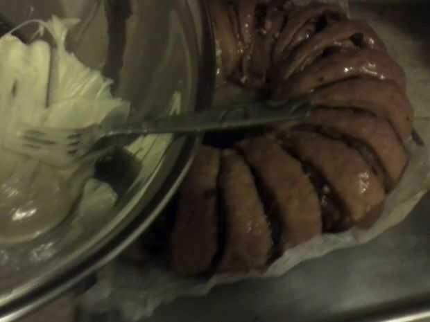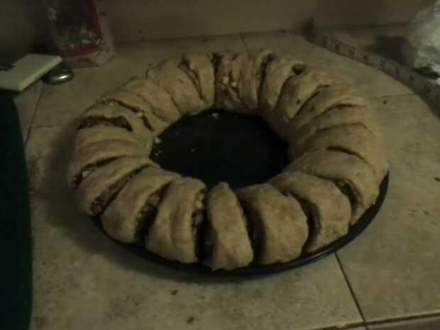 Pincelar la masa enrollada y aplanada con 2 onzas de mantequilla. Los tres primeros ingredientes en un tazón la mezcla y distribuir sobre la masa con mantequilla junto con los pistachos y los higos misión negro. Rodillo en forma de registro de cerca de 30 pulgadas y coloque en una rosquilla redonda que mide 12 pulgadas y cortar con tijeras las 24 ranuras para hacer rollos de canela de 2 docenas. Cocer en el horno durante 1 hora a 350 grados.