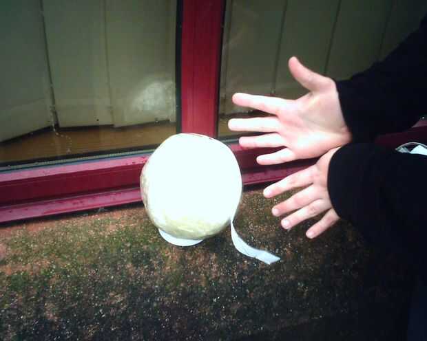 siga estas instrucciones y usted puede hacer una pelota de balón muy rápidamente!Paso 1: Saltar Primer golpe hacia arriba el globo al tamaño que desee.Paso 2: Cubrir Ahora cubrir el globo entero con cinta pato y listo!