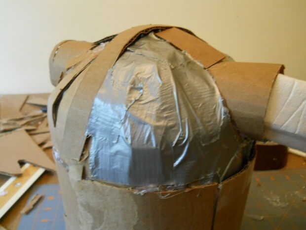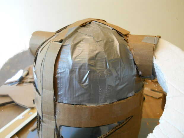 *(Side Note) cuando la capa con el uso de cinta de conducto fina tiras (tiras normales rasgadas por la mitad) alrededor de los bordes, luego cubrir áreas más grandes con tiras de tamaño normal.