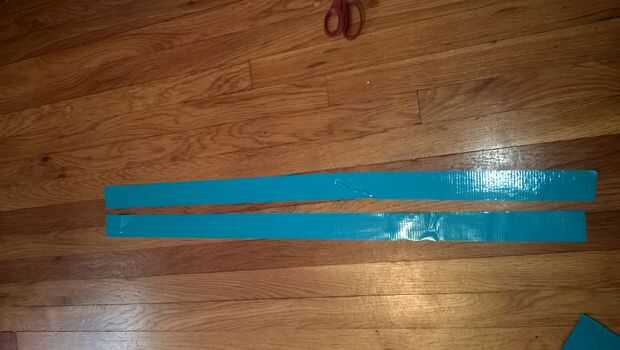 Que esta correa para el hombro debe llevar 2 largos trozos de cinta adhesiva y puestos uno encima del otro.