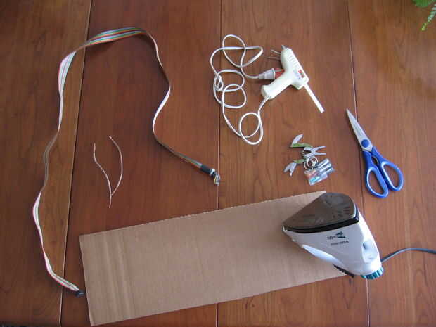 - Ribbon cable. El más colorido, mejor; debe ser por lo menos ocho pulgadas más grande que su cintura. Es mejor si es más largo, como siempre se puede recortar más tarde. La mayoría de los equipos más nuevos en que he cavado alrededor tener cables gris, aburridos, así que intente buscar en ordenadores antiguos de los años 90.