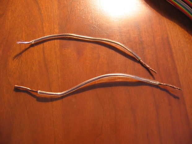 -Lazos de alambre. Usé dos trozos de cable de altavoz. Idealmente, deben ser alrededor de cuatro pulgadas de largo.