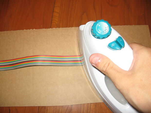 Ejecutar la longitud del cable hacia abajo con una toalla de papel húmeda, como computadoras viejas pueden ser bastante polvorientas. Averiguar de que lado de la banda hacia dentro y hierro fuera de ese lado. Los cables se derriten un poco (no dejar la plancha mucho tiempo) y podría también escama, así que ten cuidado.