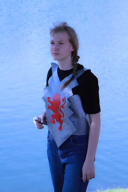 tuve un montón de diversión haciendo este chaleco de cinta de conducto! El León en la parte delantera también se hace de cinta del conducto. Lo tengo como una hoja de cinta de conducto en Jo-ann Lo corte y dibujó mi. Nunca he hecho cualquier prenda de vestir fuera de cinta antes, así que esto fue una gran experiencia para mí!