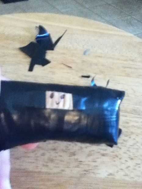 cinta aislante negraLimpiapipas negroPegamento calientePaso 1: marcoHaz una tira fina de la cinta y doblan en una muy delgada pieza plana de cinta con ningún bit pegajoso.Paso 2: mediaToma un limpiapipas y corta para ser pequeña. De la curva para ser