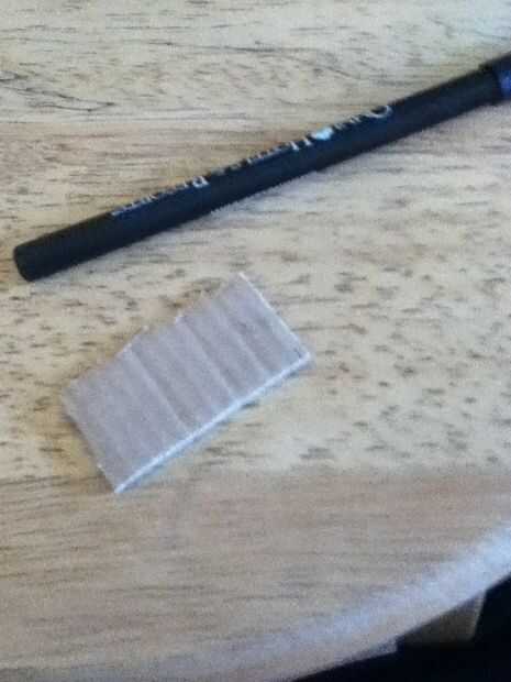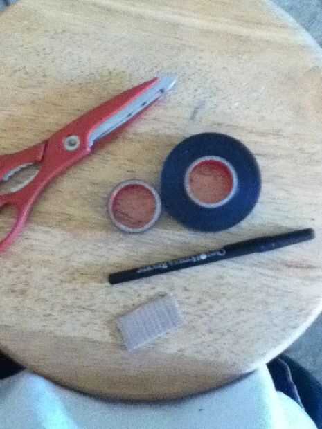 cinta aislante negraLimpiapipas negroPegamento calientePaso 1: marcoHaz una tira fina de la cinta y doblan en una muy delgada pieza plana de cinta con ningún bit pegajoso.Paso 2: mediaToma un limpiapipas y corta para ser pequeña. De la curva para ser