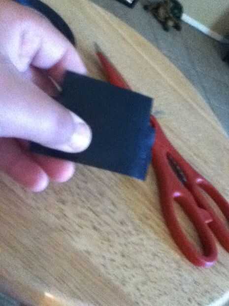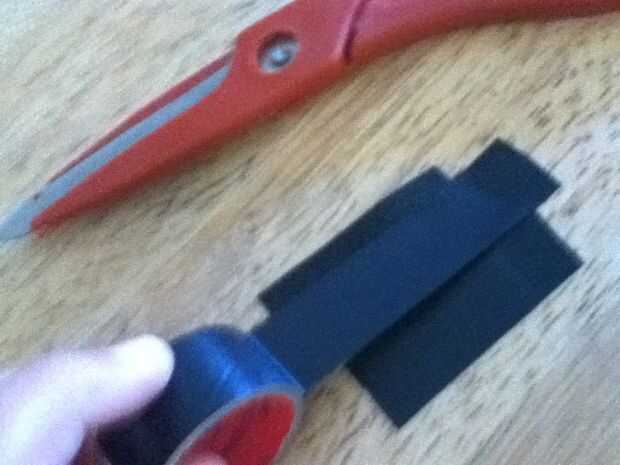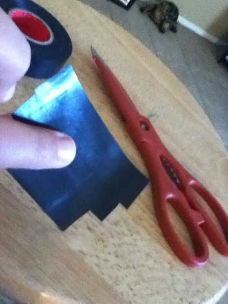cinta aislante negraLimpiapipas negroPegamento calientePaso 1: marcoHaz una tira fina de la cinta y doblan en una muy delgada pieza plana de cinta con ningún bit pegajoso.Paso 2: mediaToma un limpiapipas y corta para ser pequeña. De la curva para ser