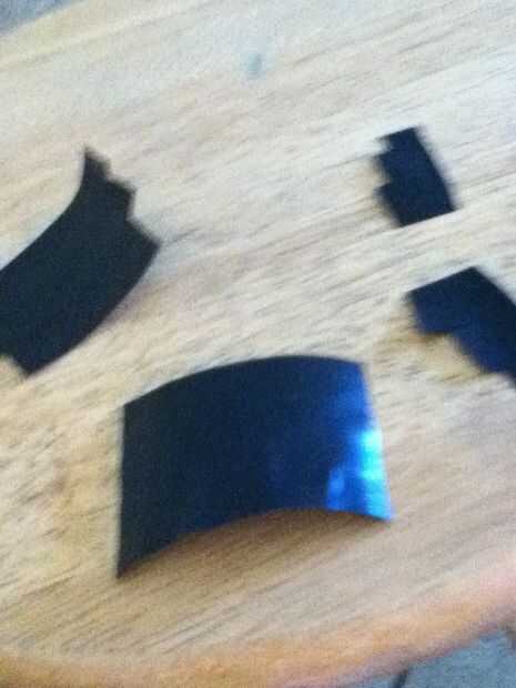 cinta aislante negraLimpiapipas negroPegamento calientePaso 1: marcoHaz una tira fina de la cinta y doblan en una muy delgada pieza plana de cinta con ningún bit pegajoso.Paso 2: mediaToma un limpiapipas y corta para ser pequeña. De la curva para ser