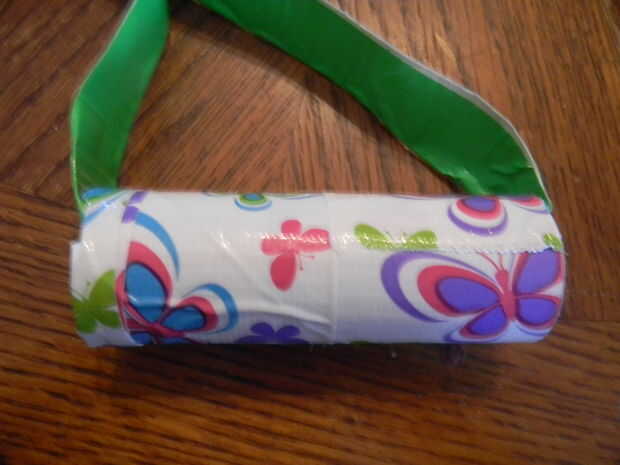 I cubierto un tubo vacío de papel higiénico con una cinta impresa y la correa a través de los cordones y grabado juntos.