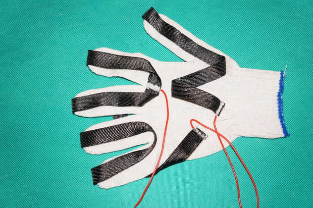 Antes de palo de la cinta de carbón en los guantes, trate de arreglarlo, solo una prueba de cómo se le hizo. Puede elegir su propia ubicación de la cinta de carbón en los dedos y la palma, para su conveniencia.
